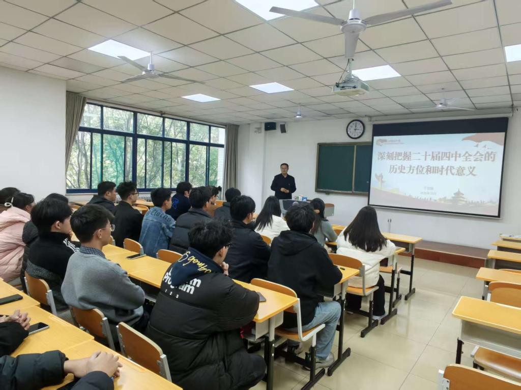 为深入落实党的二十届四中全会精神,切实强化学生党员及入党积极分子的思想引领,10月31日,我院党委副书记、院长于治国在博识楼304教室,以《深刻把握二十届四中全会的历史方位和时代意义》为题,带来了一场深刻而生动的主题党课。
