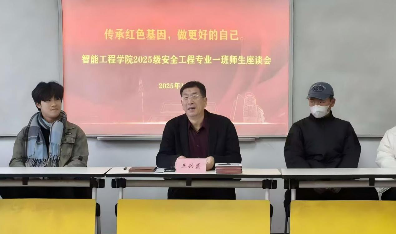 为全面落实立德树人根本任务,深入了解学生思想动态,扎实推进领导干部深入基层联系学生班级工作,12月2日,学校纪委、省监委驻山东管理学院监察专员王兴盛在明志楼108教室以《传承红色基因,做更好的自己》为题为智能工程学院2025级安全工程专业一班讲授思政课,并与学生进行座谈交流。