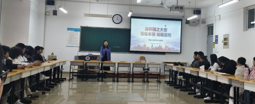为落实立德树人根本任务,引导当代大学生筑牢思想根基,坚定理想信念,明晰成长航向,12月16日下午,智能工程学院党委书记阮梦黎在博识楼202教室为2025级人工智能1班同学以“胸怀国之大者,苦练本领,砥砺品格”为主题讲授思政课。