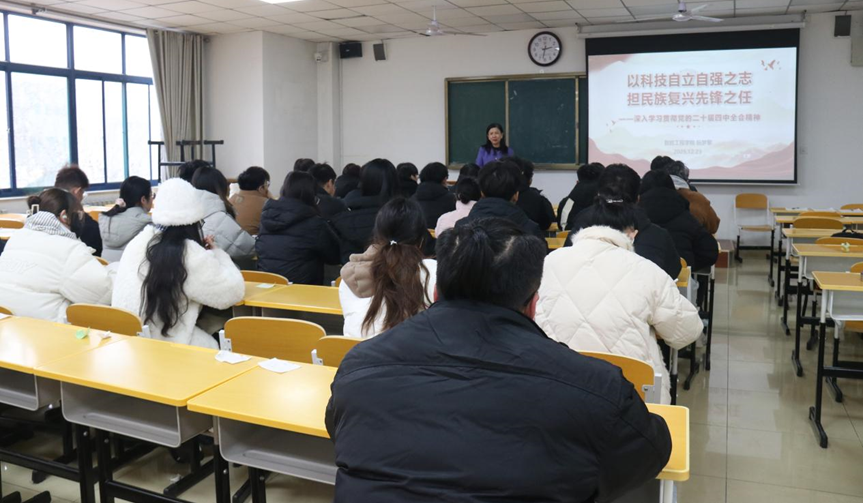 为深入学习领会党的二十届四中全会精神,切实把思想和行动统一到党中央战略部署上来,12月23日,智能工程学院党委书记阮梦黎在博识楼302教室以《以科技自立自强之志 担民族复兴先锋之任》为题,为学生党员及入党积极分子讲授专题党课。